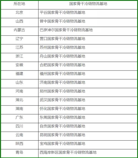 2020年國家骨干冷鏈物流基地建設(shè)名單