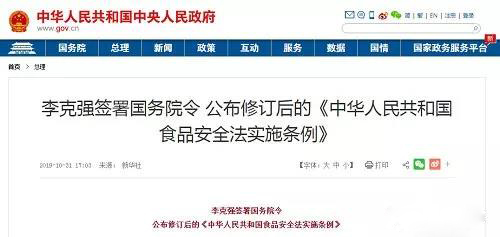 機遇下也充滿挑戰(zhàn)。法律法規(guī)體系不健全,缺乏體系化的行業(yè)標準,有效的技術(shù)監(jiān)管手段......依然是行業(yè)存在的痛點,也是制約食品安全體系快速發(fā)展的要素。在此背景下,2019年10月,國務院總理李克強簽署國務院令,公布了修訂后的《中華人民共和國食品安全法實施條例》(以下簡稱《條例》),自2019年12月1日起施行。